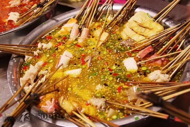 麻辣爽口!汤汁都是用骨头汤跟鸡汤熬制的,配上特调的辣椒,特色的冷锅串串,老板娘是个美女,每天摊前面都围满了人。