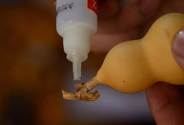 为了更好的保证龙头结实,可以在葫芦的龙头上滴上502,(特别注意,在滴502胶水的时候,葫芦一定龙头朝下,防止502流到葫芦上,如果流到葫芦上,葫芦就报废了)。也有的朋友给葫芦缠绕上红绳,这样龙头是美观了,但是保护效果不如502更有效果。