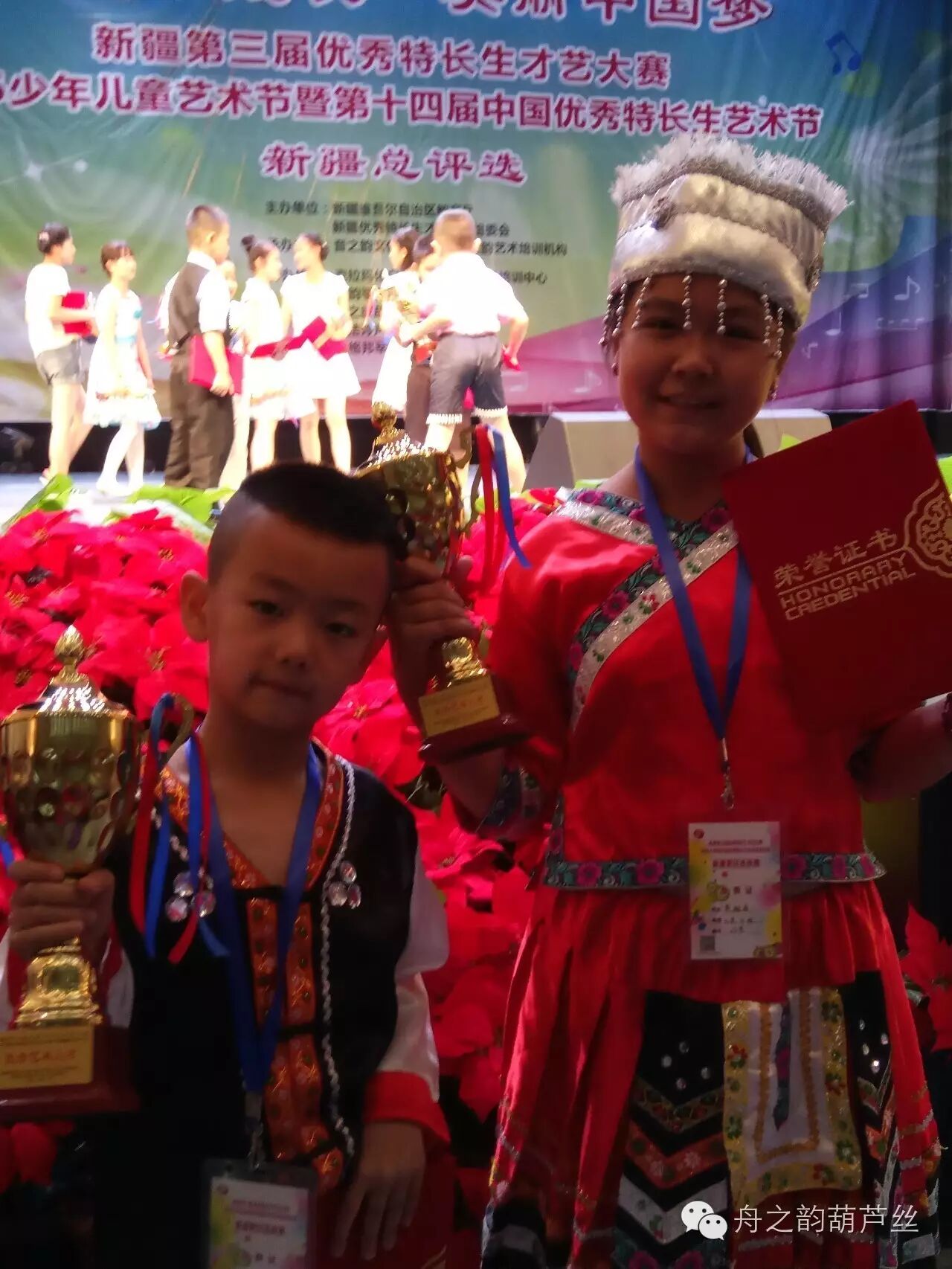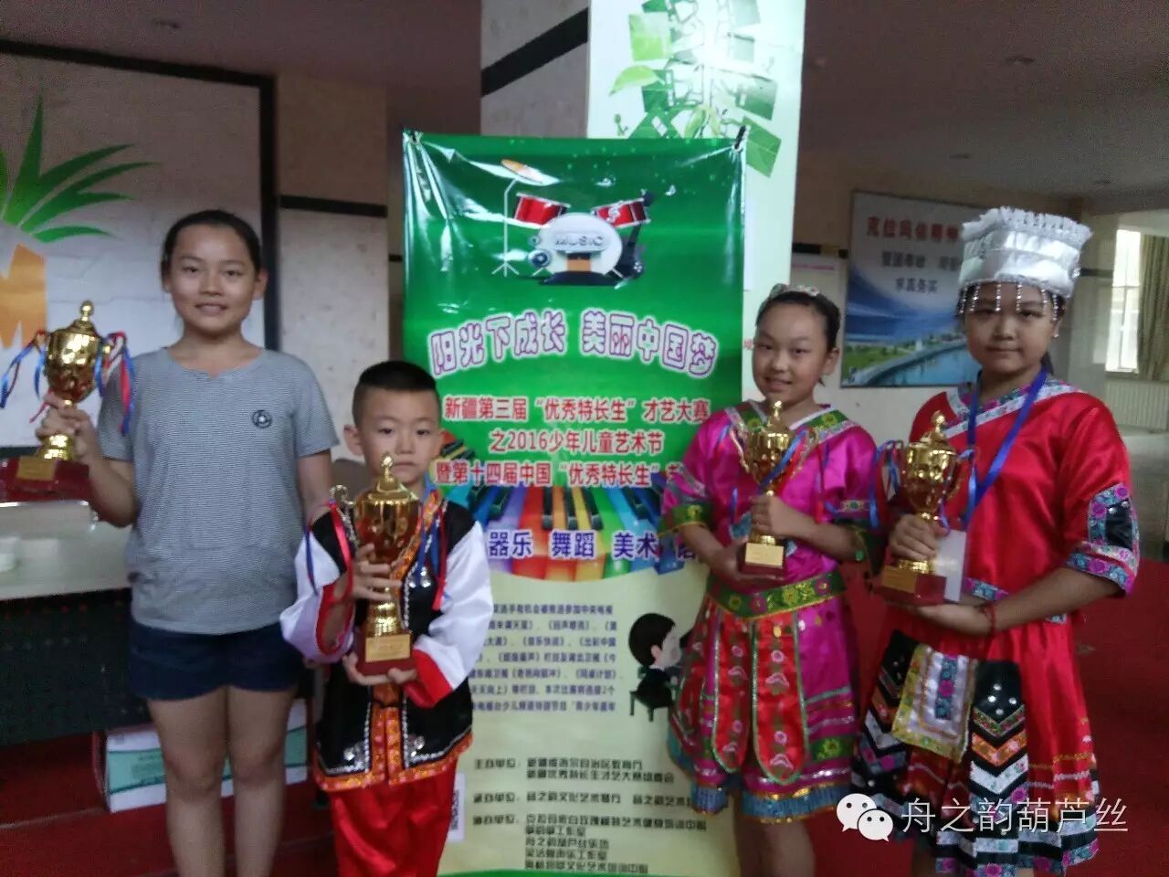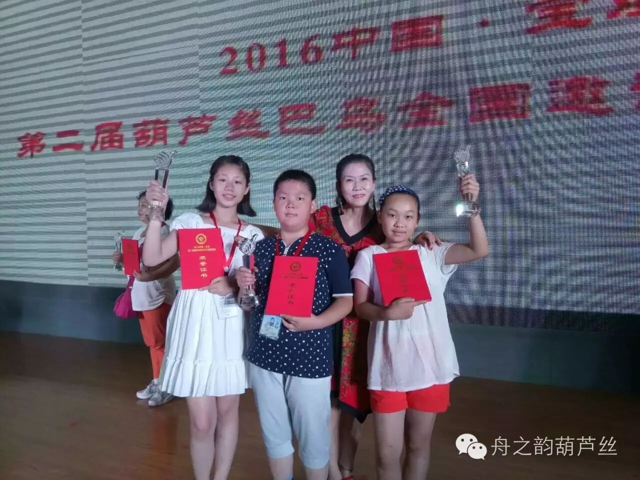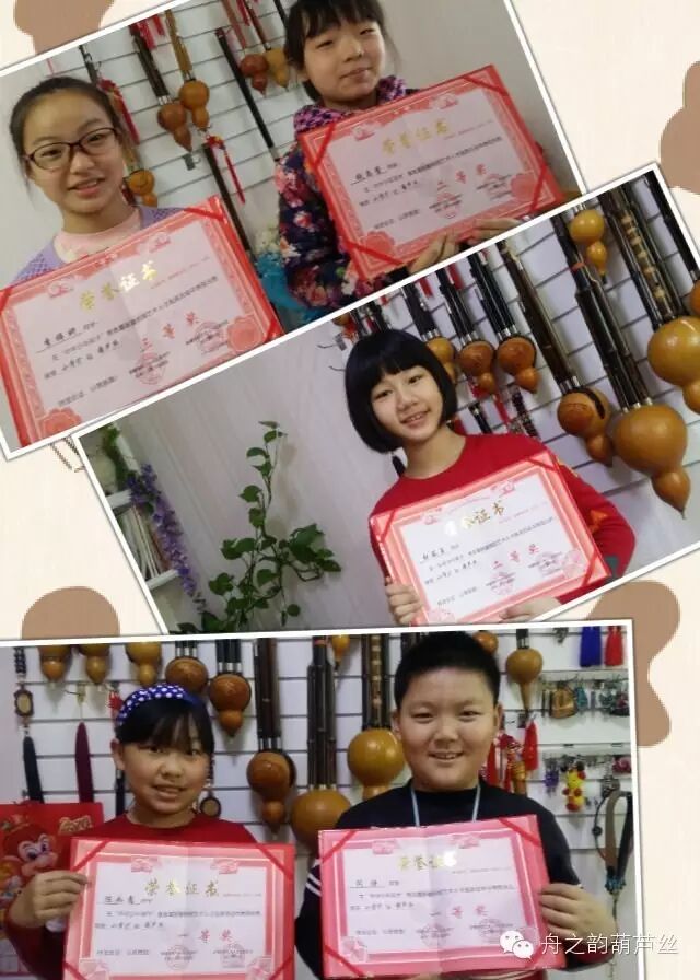 此次大赛中《舟之韵葫芦丝乐坊》的学生获得金银奖项