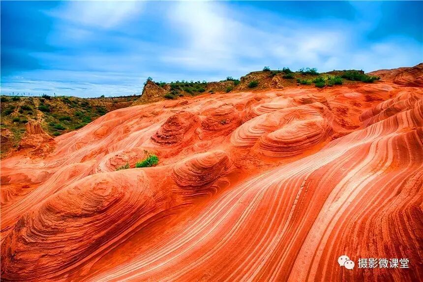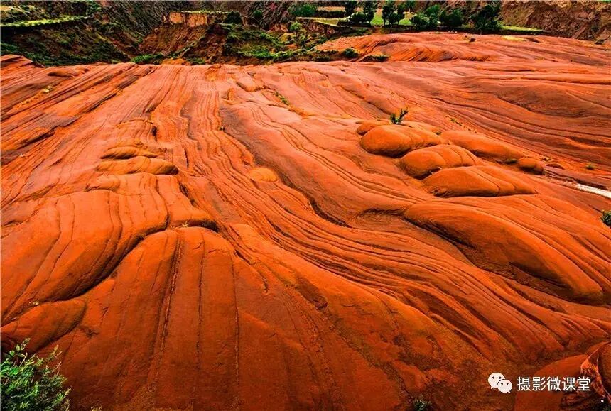 5、波浪谷,龙洲丹霞地貌是目前陕西规模最大的一个丹霞地貌景地,当地人称“波浪谷”、“红石峁”,也叫靖边红沙岩峡谷。这里的红色砂岩在风雨剥蚀下呈现出千奇百怪的姿态和色彩,不同角度、时间都会呈现不同的景色。在雨后天晴时,红砂岩的色泽会更加鲜艳,同时也会在阳光下形成特殊的光影,景色壮观奇特,因此也吸引了很多摄影大咖的目光。