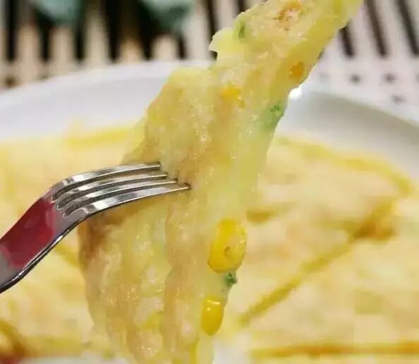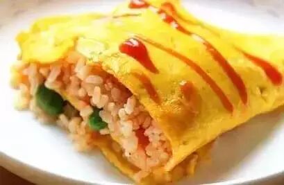 8、倒入剩余的蛋液,晃动锅子,使蛋液延展至锅的四个角落,并且与之前卷的蛋卷一端融为一体。