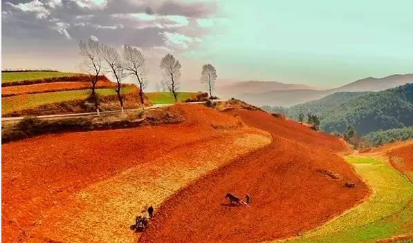 在云贵高原,山谷沟壑之间,有一片绚烂的红土地。赤橙红绿青蓝紫,犹如彩虹一般,艳丽到极致。