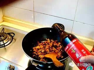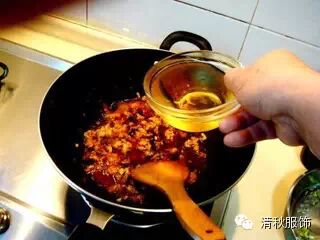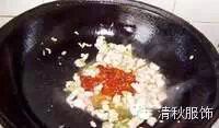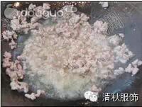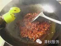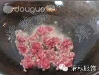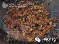 9. 待肉馅成微微金黄色加入豆瓣酱和豆豉。