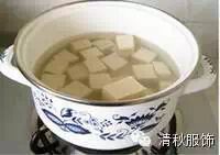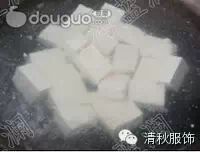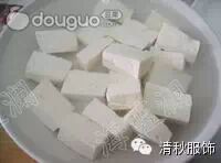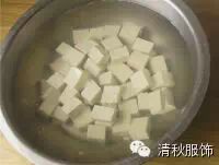 9.冷水把豆腐放锅里焯去豆腥味,这样还可以让豆腐吃起来更加软滑。