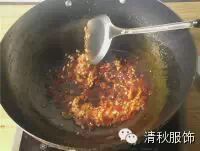 锅中放油,小火炒香郫县豆瓣酱,炒出红油