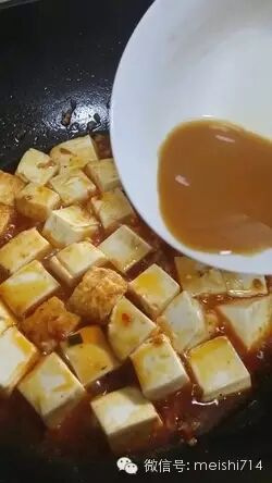 加热入炒料的水要少,豆腐要注意轻推,因为易碎。