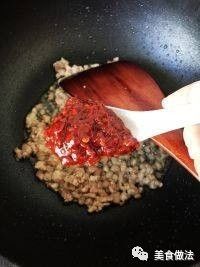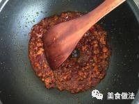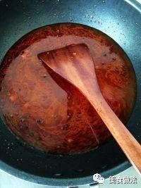 12.玉米淀粉兑一点水成液体,待锅内烧制水变少以后,加入玉米淀粉液体,边倒边轻轻搅拌