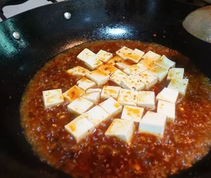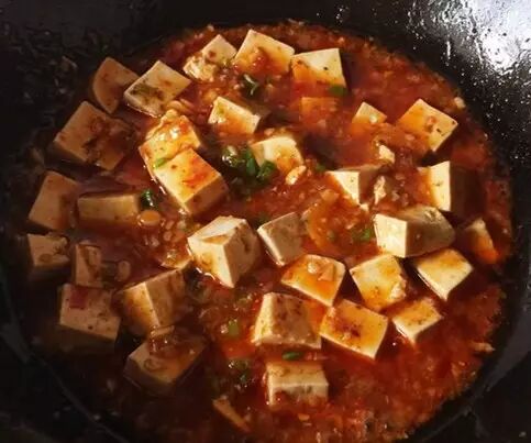 ▶配料:豆腐400克,牛肉50克,郫县豆瓣30克,豆豉20克,盐2克,酱油15克,姜末5克,高汤300克,菜籽油30克,蒜苗30克,花椒面1克,辣椒面5克。