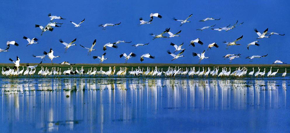 鄱阳湖是国家湿地公园,也是世界上最大的鸟类保护区,保护区内鸟类有300多种,其中白鹤最出名,因此又被称为“白鹤世界”,“珍禽王国”。