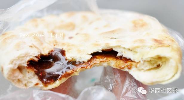 做军屯锅盔的有很多,为何偏偏介绍这家?哈,主要还是这家的红糖锅盔打动了社区君的心。现烤出来的锅盔,皮特别薄,里面是红糖馅,厚厚的一层,热乎乎吃很好啊,而且不上火。