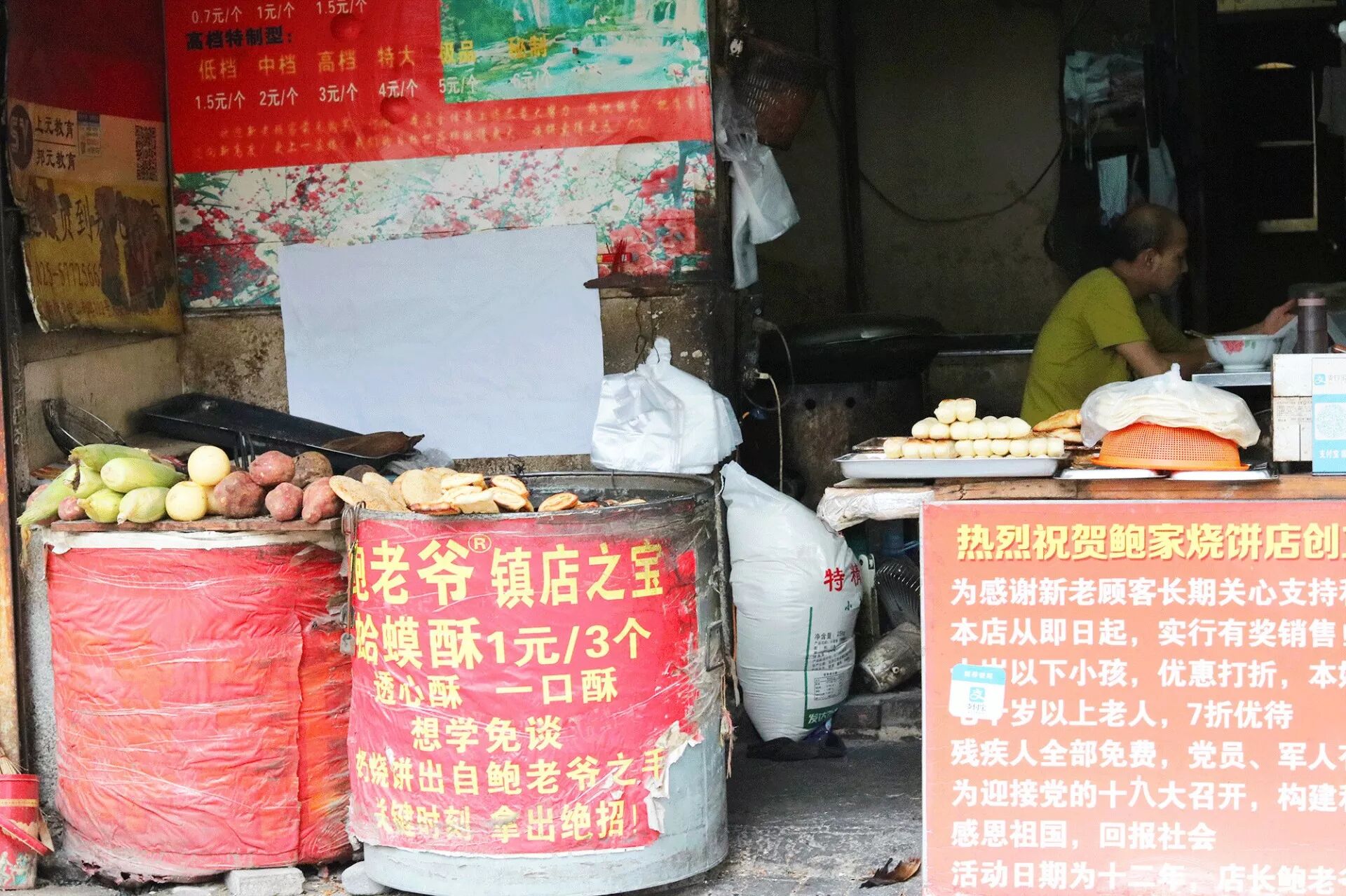 在豆浆店对面,是一家烧饼店,早上的时候可以搭配烧饼就着豆浆吃。