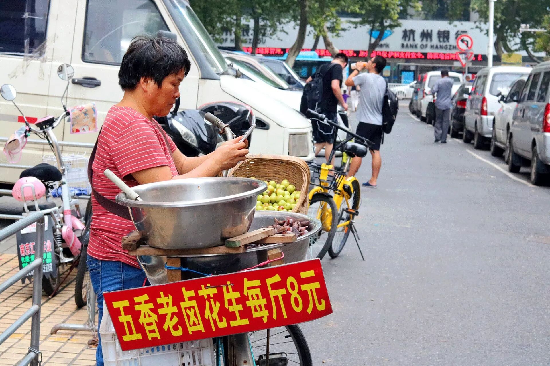 除了小店,张府园的街道上还会有流动的摊点,卖点当季的菱角,青枣什么的。