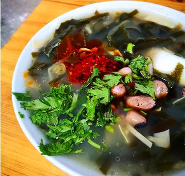 他家不止卖豆浆豆腐脑,还有胡辣汤卖,海带超多,一碗很实在,卖相满分。