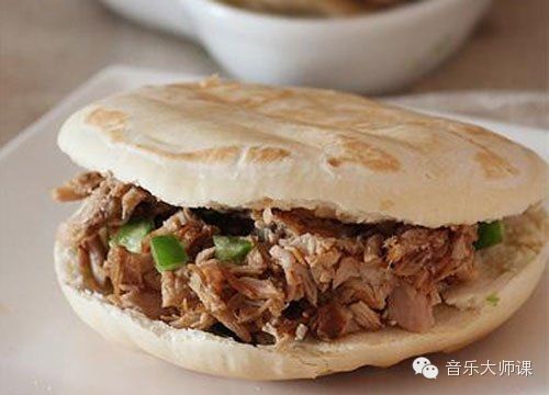 肉夹馍是源于古城西安的著名小吃,起源于战国,有中式汉堡美誉。实际它是两种食物的绝妙组合:腊汁肉,白吉馍。肉夹馍合腊汁肉、白吉馍为一体,互为烘托,将各自滋味发挥到极致。食者有“肥肉吃了不腻口,瘦肉无渣满口油,不用牙咬肉自烂,食后余香久不散”之赞誉。
