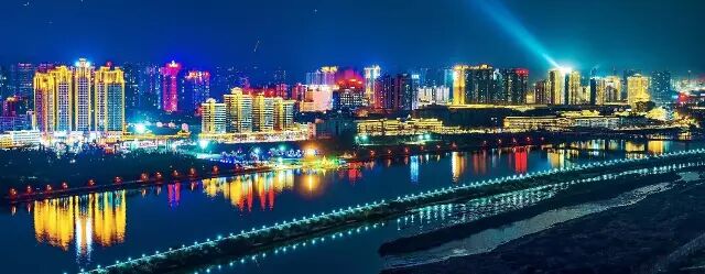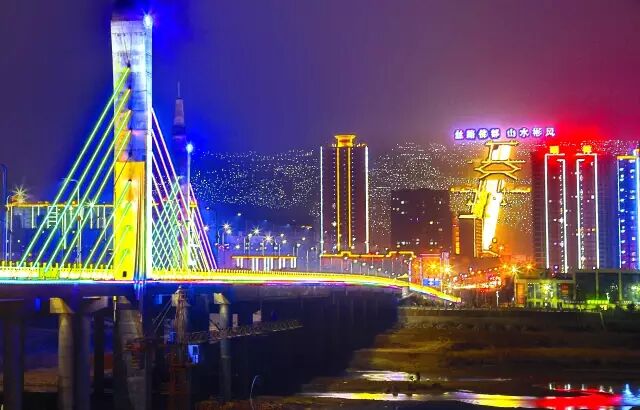 咸阳的夜景,无比美丽。一条条街道变成了皓光闪耀的银河,灯光照亮了城市的夜空,依稀飞起汽笛、欢笑、笙歌之声,给夜中城平添无限生机……