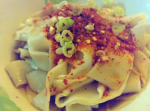 店名超难写,发音也很有意思。面条是一大片一大片的:先做个裤腰带一样的面条条,然后一拽一拽,下到锅里,一会就好,这样面片儿比较小,臊子的未到就可以挂的很足,好的很,有嚼劲,配上特色的三合一酱料(大肉臊子+西红柿鸡蛋+炸酱),汤浓肉香,不知不觉就吃了个底朝天。其他类型的面也不错。本地、外地的都不妨去尝试一下。