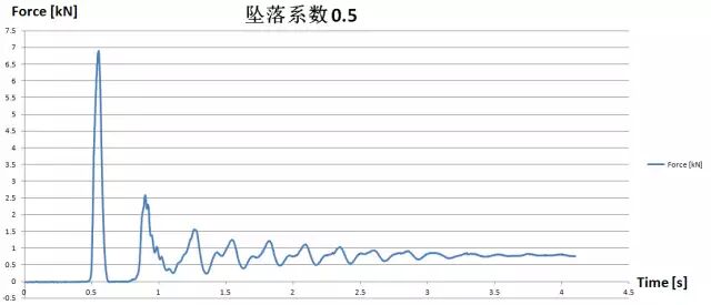 分别进行坠落系数(FF)0.5, 1 ,1.5的坠落测试。