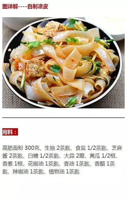 陕西凉皮种很多,做法各异,调拌时各具特色,口味也不同。麻酱凉皮,秦镇凉皮,汉中米皮,岐山擀面皮,面筋凉皮,还有陕西还扶风的烙面皮,汉中的魔芋凉皮、黑米凉皮,绿豆凉皮等等。凉皮吃法多样,可凉拌、可热调、还可以炒着吃,但主要还是凉拌着吃。做法较简单,调拌凉皮时,先加入醋水、酱油水、盐水,最后在凉皮表面均匀地铺一层芝麻酱,吃起来满口溢着芝麻的香味,那真的是透着十分的“爽”。