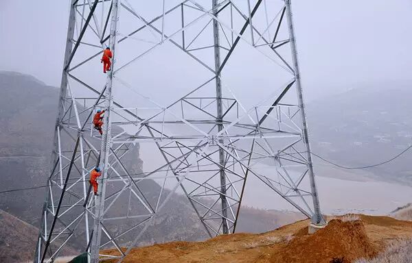 在雪花扬扬洒洒中我离开了火热的工地,回望身后圪梁梁上高耸的铁塔,还有那一线连秦晋的银线,“嗨哟、嗨哟”的劳动号子声依旧在耳。恰似印证了送电工这个群体所具备的特性:严寒肆虐不言苦,雪雨侵袭酿初心……