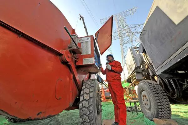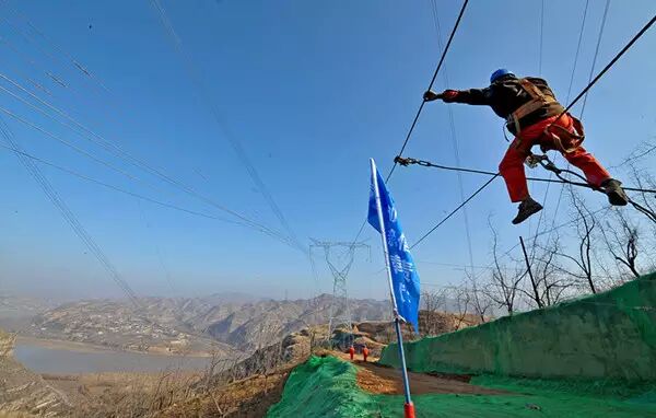 冬季的陕北黄土高原已是滴水成冰,呈现出严冬的肃杀,夹在陕西、山西地界之间的黄河由西向东逶迤而去。砾石裸露的黄河西岸的岸畔布满了冰晶。随着大马力牵引机和吊车发出的阵阵轰鸣,陕西送变电公司承建的榆横—潍坊1000千伏特高压交流输变电线路工程进入了冬季施工高潮。
