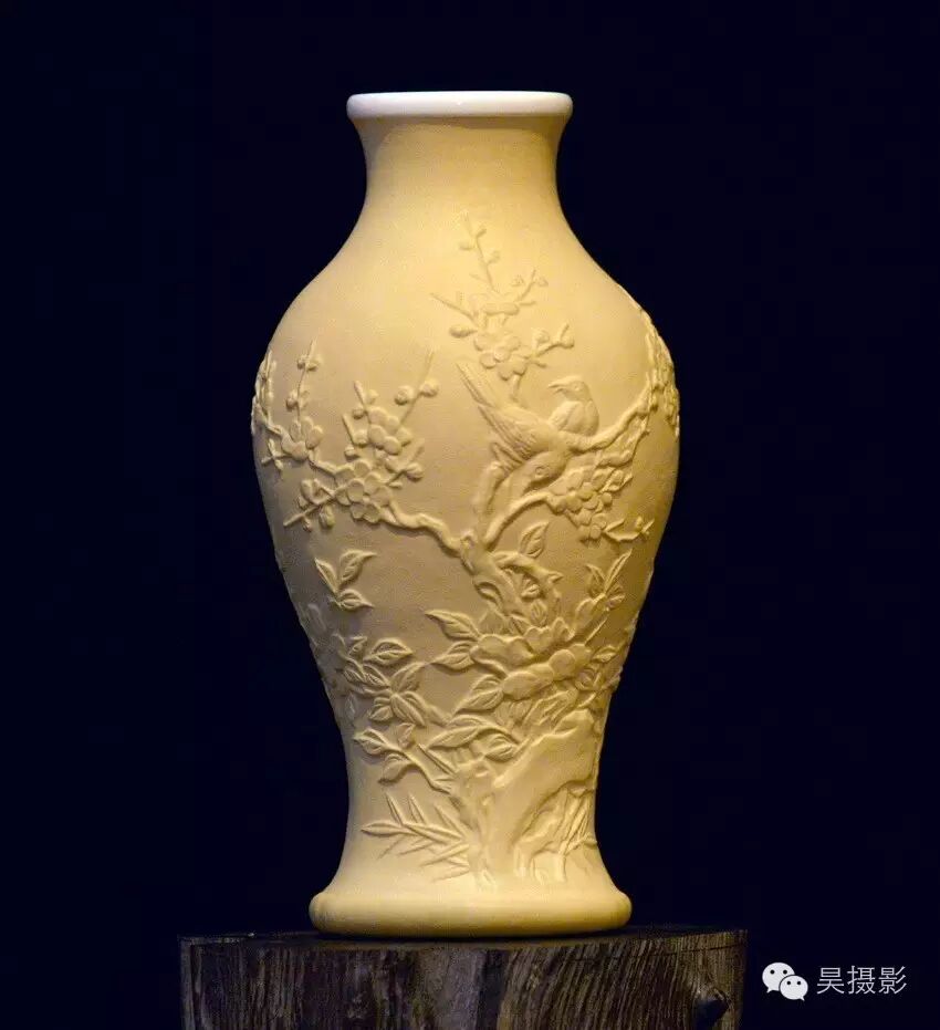 黄全华曾获得的百花杯金奖作品《喜鹊登梅》瓶摆件