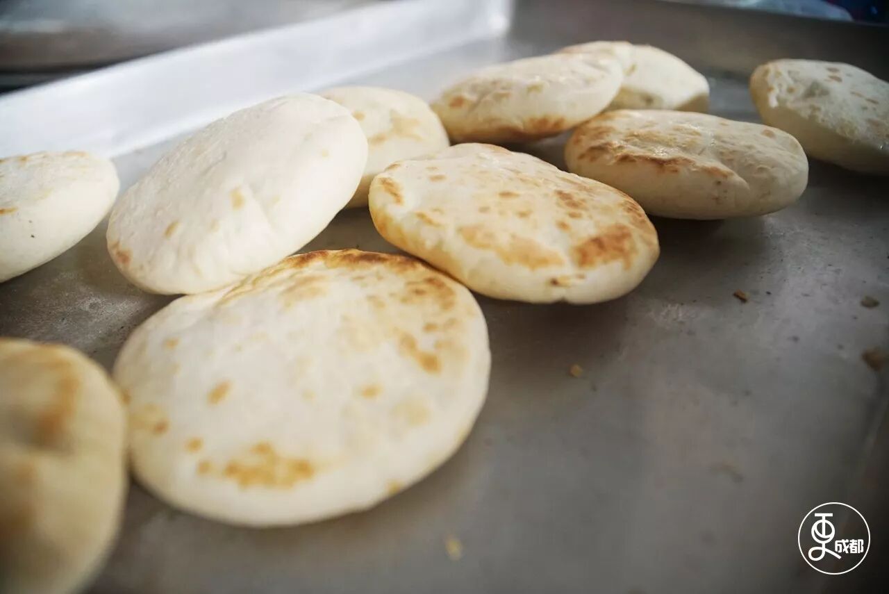 在新二村菜市场里面,有家魏锅盔。魏师傅打的白面锅魁,是不少成都人的私藏。喝羊肉汤,吃卤肉的时候,心里都要惦记着新二村的锅魁。