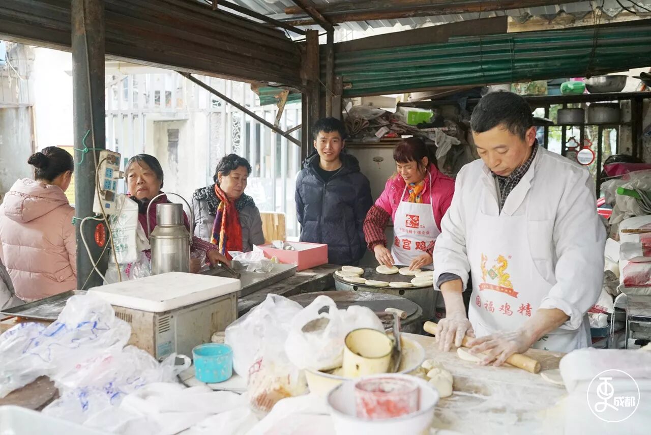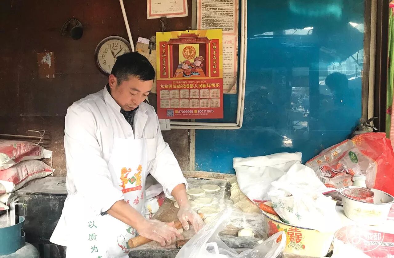 魏师傅在成都卖了30多年锅魁,他自己说,新二村百分之九十的居民他都认得。