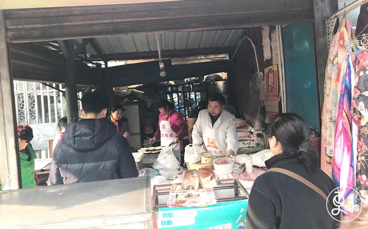 新二村菜市场的模样,大概几十年都不曾改变,逛了一大圈回到锅盔,看到斜对面巷子里的小谢肉铺在装排骨香肠,顺手就装了十斤。提在手里沉甸甸,再看魏师傅已经休息完毕,在铺子里面准备打锅魁了。