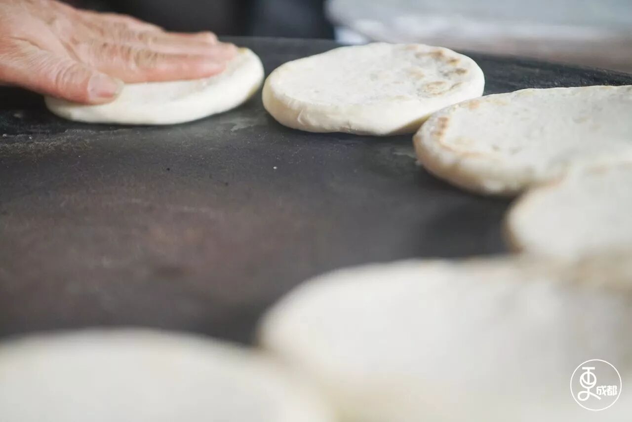 跟着魏师傅在锅魁摊子上守了两个小时,这期间几乎来买锅魁的每一位主顾他都认得到,有时候还要拉两句家常。穿着睡衣的年轻人来要两只红糖,这娃娃不到柜台高的时候就在我这卖锅魁吃了;住在前面单元的婆婆要三只白面回去夹卤肉,说是屋头的卤肉上午就卤好了;搬到三圣乡的老邻居,赶车子过来买锅魁的也能遇得到,习惯了魏师傅家的锅魁,外面买的吃不惯。