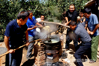 这是过事压饸饹,压饸饹分两道三个小组,每组三到四人。