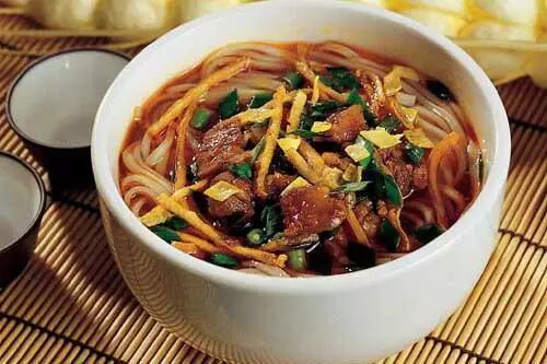 陕西臊子面是陕西省汉族风味小吃,以薄、筋、光、汪、酸、辣、香等特色,吃口柔韧滑爽,臊子面的特点是面条细长,厚薄均匀,臊子鲜香,面汤油光红润,味鲜香浑厚而不腻。