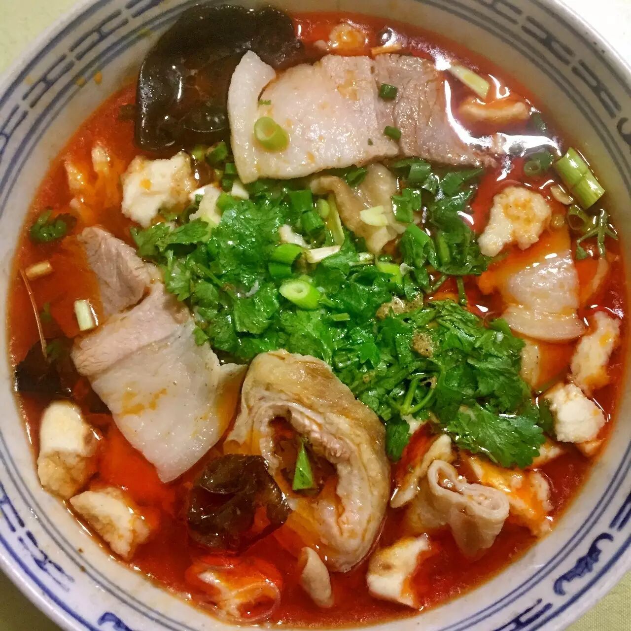 师傅端上来一看,精肠汤里无论是精肠还是五花肉的量都给的很惊艳惊艳,区别与其他家,他家的精肠汤红油+骨香,让人禁不住食欲大增。婶觉得他们家的精肠品相绝了(不是肥到底的精肠,最里层还有一层瘦肉)!肠子处理的很干净,原味香!