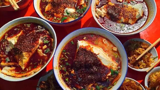 豆花丝滑,锅盔筋道,外加豆浆香气四溢,最出彩还是最后的那勺油泼辣子,绝对算得上是点睛之笔。