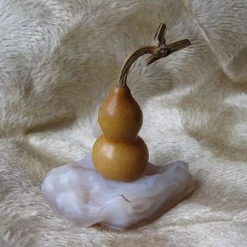 成熟的葫芦去皮风干后呈淡黄色,托在掌中有果实沉甸感,稍用力摇动有清脆的葫芦籽撞击葫芦内壁发出的清脆“哗哗”声,属上佳葫芦。随着时间的流逝颜色逐渐成暗黄色,长时间日照颜色会逐渐成褐紫色,在加上收藏者长期用手赏玩,葫芦表面会有一层自然包浆,更显晶莹光洁。