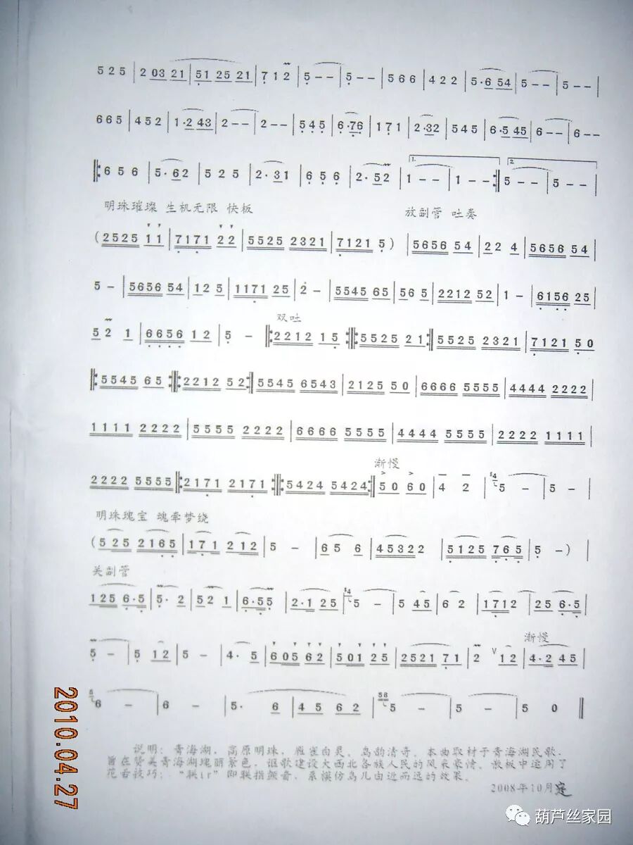 ,曲调清新,旋律优美,具有浓郁的地方风格的作品,同是也是很有难度的独奏曲,该曲中有新的技巧,在技法上也有很大的突破和创新……葫芦丝《青海湖之恋》音频