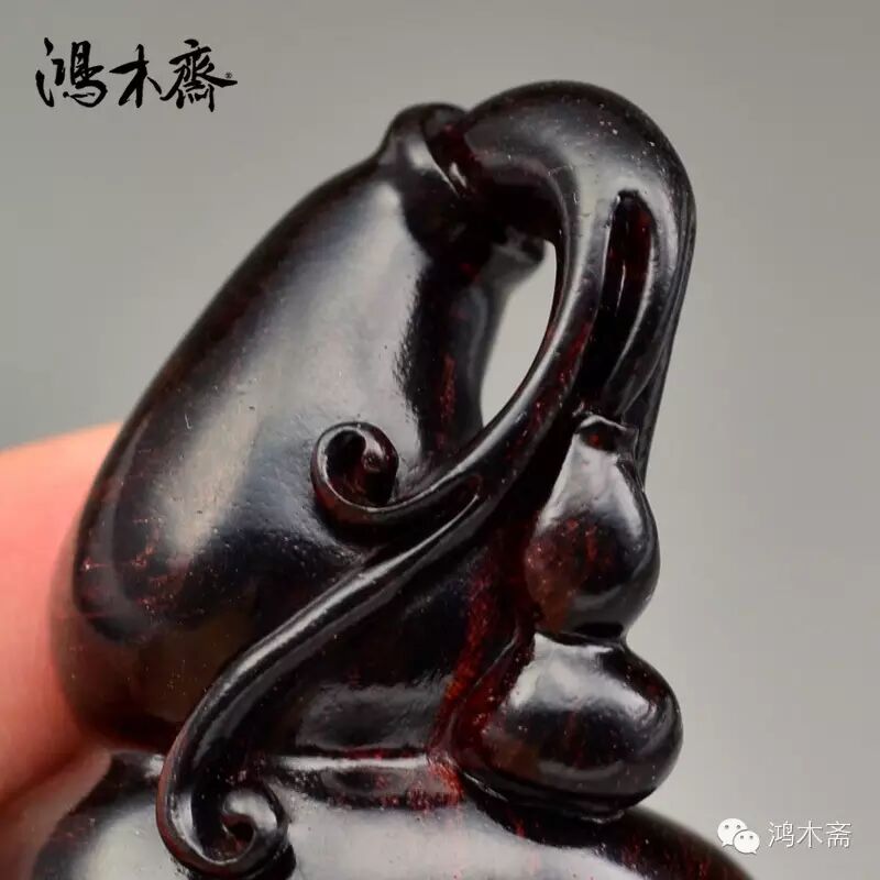 该件实物观后简评:良木不敢减物力,精琢不可省人工,鸿木斋--良木精琢经营理念。用料海南黄花梨油梨老料,琥珀感很强。由百吉雕刻创始人仲庸先生依原材形态设计款型,百吉雕刻团队精琢而成,手感细腻,细节表现极为丰富。海黄得天独厚的美丽纹理和色泽,加上百吉雕刻的精湛构思和技艺,才有了如此精致优雅的海黄物件。此件纹理极品级,密度收藏级,油性极品级,细腻程度精品级,比重收藏级,无明显裂补等瑕疵。