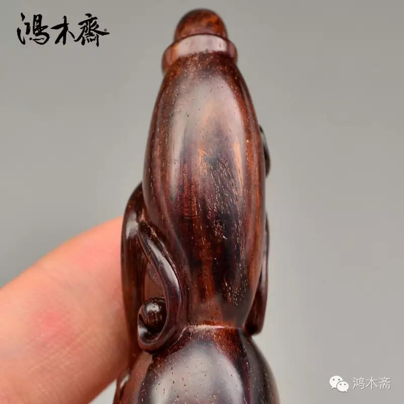 该件实物观后简评:良木不敢减物力,精琢不可省人工,鸿木斋--良木精琢经营理念。用料海南黄花梨油梨老料,此料琥珀感很强。由百吉雕刻创始人仲庸先生依原材形态设计款型,百吉雕刻团队精琢而成,手感细腻,细节表现极为丰富。海黄得天独厚的美丽纹理和色泽,加上百吉雕刻的精湛构思和技艺,才有了如此精致优雅的海黄物件。此件纹理极品级,密度极品级,油性极品级,细腻程度精品级,比重精品级,无明显裂补等瑕疵。