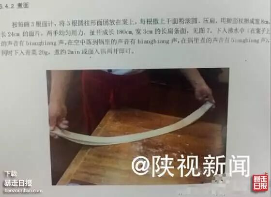 biangbiang面的面条宽度为8cm,长度为24cm,扯开后长度为180cm,宽度为3cm。