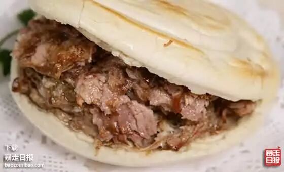 肉夹馍的肉皮厚度不超过4mm,肥瘦比例为 3.5 : 6.5,腊汁汤温度在30℃时、盐度在11-12度之间。
