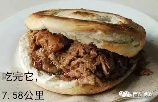凉皮配肉夹馍在西安是标配,可是,一个肉夹馍200g,455卡,需要跑步7.58公里……
