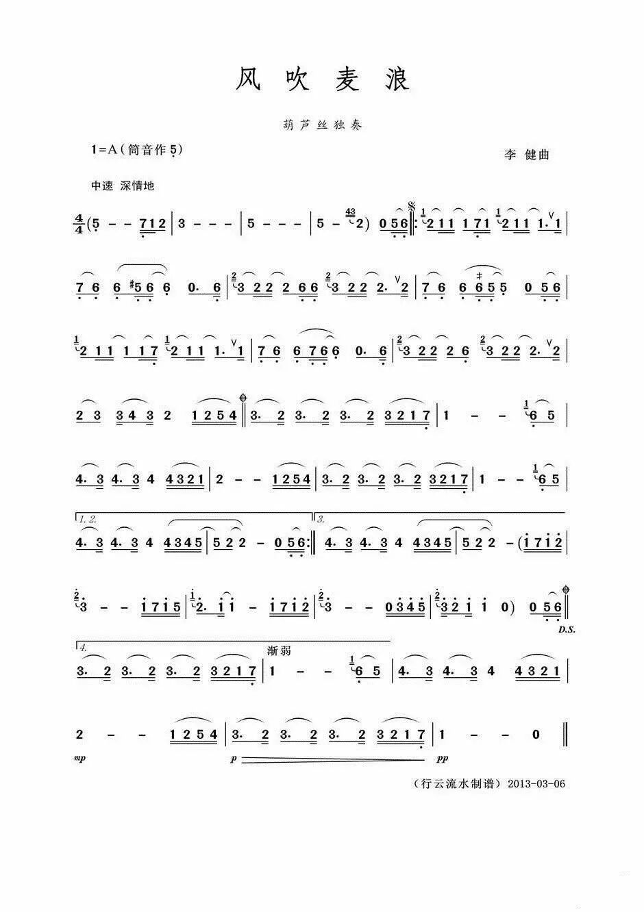 2007年,李健创作了这首歌曲并发行在《想念你》专辑中,2012年该曲重新加工。李健表示这是一首简单而浪漫的歌,所以在编曲时力求唯美,在风格上借鉴了电影配乐。葫芦丝《风吹麦浪》音频
