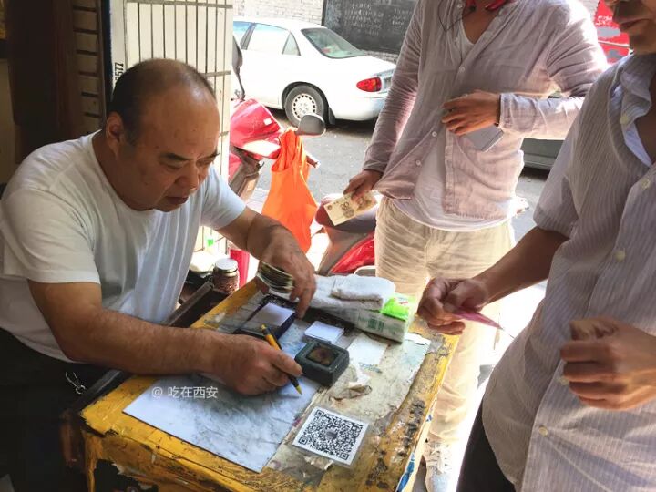 这家老板王天明可以说很有脾气了,饭点见他就是坐在店门口,一手攥着钱,一手开着票,头都不怎么抬,不过这条街上的老店都是这种收钱方式。