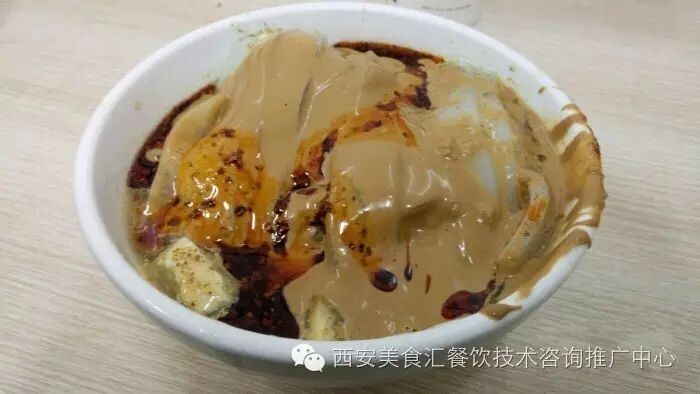 说起卤汁凉粉,那可是西安特色美食,单单一个回民街,就有大大小小不下三十家的卤汁凉粉店,要说最有名的,就属大皮院宏顺祥家的了。从名字就能看出打卤汁和凉粉一起吃的叫卤汁凉粉。这卤汁凉粉吃的时侯有讲究,绝对不能搅,要像吃泡馍一样从边上慢慢“刨”着吃,一口口吃下去,味道层次分明,实在是一场味觉的享受。到了夏天再配上一杯冰镇酸梅汤,口味纯正,清凉解暑!