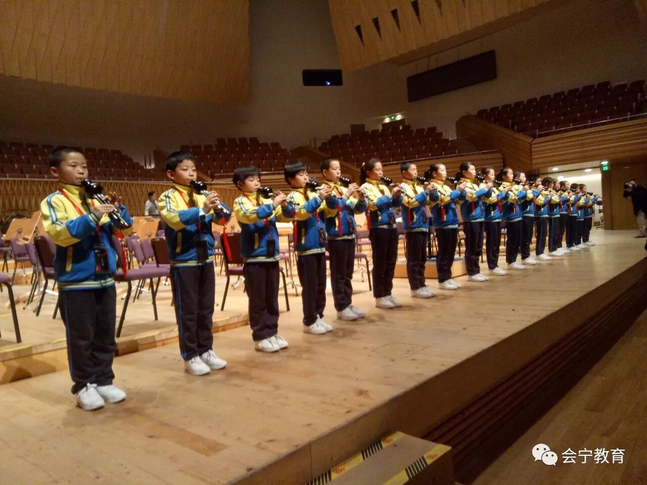 受太平洋保险公司资助,会宁县丁家沟镇中心小学于1月4日派葫芦丝社团22人赴上海参加演出。 1月6日下午,社团进行了彩排,晚上六点半演出活动在上海交响乐团音乐厅正式开始,孩子们和全国著名指挥家陈燮阳爷爷,上海交响乐团长号首席郝洁进行了互动和合作,并且得到了技艺练习指导。同学们精彩的表演赢得了观众热烈的掌声。