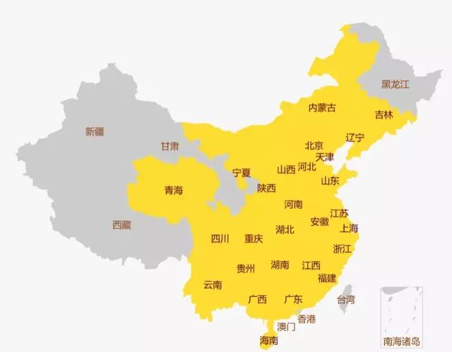 中高协差点球场覆盖省份示意图