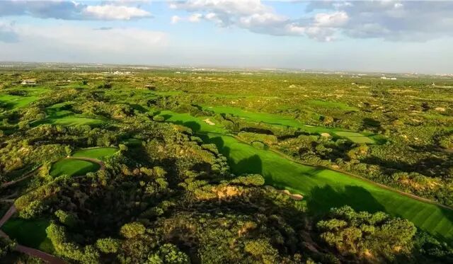 陕北榆林大漠绿淘沙高尔夫俱乐部坐落于榆林市沙地生态公园内,天然的沙漠、绿色的草坪体现了人与自然和谐交融的生机景致。球场的青翠绿色如黄金上镶嵌的翡翠一般散发出夺目光彩。凭风而立,一望无际的苍茫大漠充斥四野,夹杂着林克斯的狂野气息扑面而来,让人心旷神怡,球道的高低起伏间则蕴含着未知的凶险挑战。