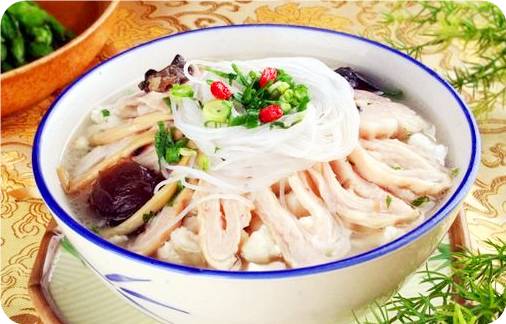 用上好的肉骨和鸡鸭肉熬制许久而成的乳白色汁汤,鲜香十足,清淡可口,最是养人!