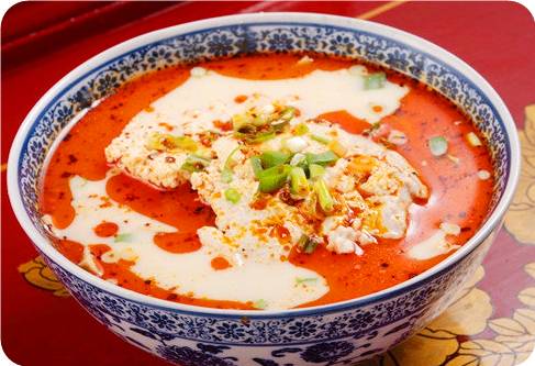 将切开锅盔放入滚开的豆浆中烧煮,配以爽滑的豆花烩成一碗美食,豆花晶莹,锅盔金黄,那可是白的白,黄的黄,豆香味浓郁,撒上葱花香菜,淋上焦香火辣的油泼辣子,单单就冲着这么卖相,不吃上一碗都对不起自己咯!