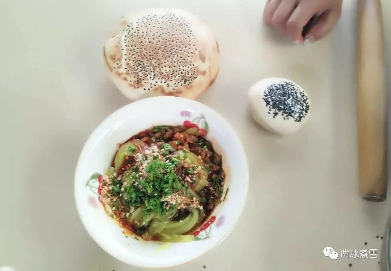 那时零用钱极少,5毛钱仅够买半个,课间休息,便找好“锅盔搭子”。放学后呼朋唤友,一起排队。一刀下去,一声喀吱,一分为二,装上凉粉,吃着回家。一行人快意恩仇,谈笑风生……因锅盔收获了几段友谊。此时,锅盔倒成了陪称,像中国文化,饭桌上的酒。