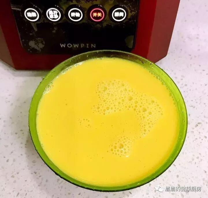 3、打好之后,按瞬间键,即可将南瓜豆浆过滤后从水龙头放出来。南瓜本身就自带甜味,不用额外再添加蜂蜜或白糖。南瓜营养丰富,南瓜含有淀粉、蛋白质、胡萝卜素、维生素B、维生素C和钙、磷等成分。南瓜和豆浆的植物纤维结合,可帮助消化,降低胆固醇!